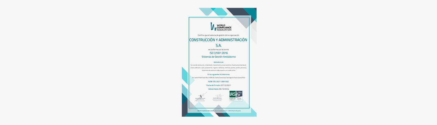 Mantenemos firmemente nuestro compromiso de ejecutar Infraestructura responsable en nuestra labor diaria lo cual se refleja con el cabal cumplimiento de obras y servicios de alta calidad.